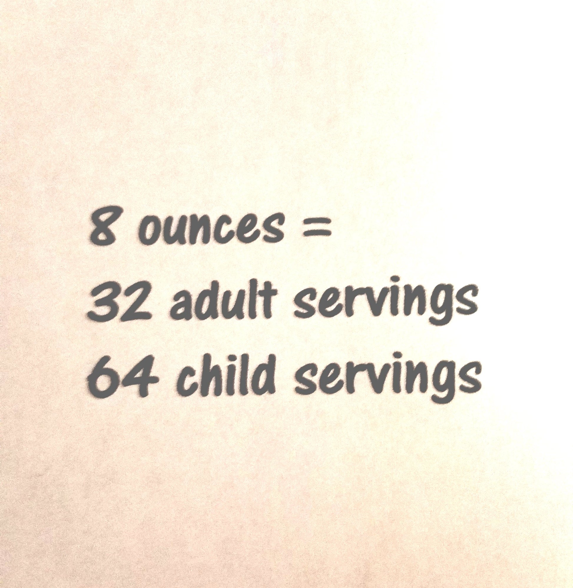 Dosage amounts: Adults (1 TBSP), Children over 1 yr old to 12 years old (1 tsp)